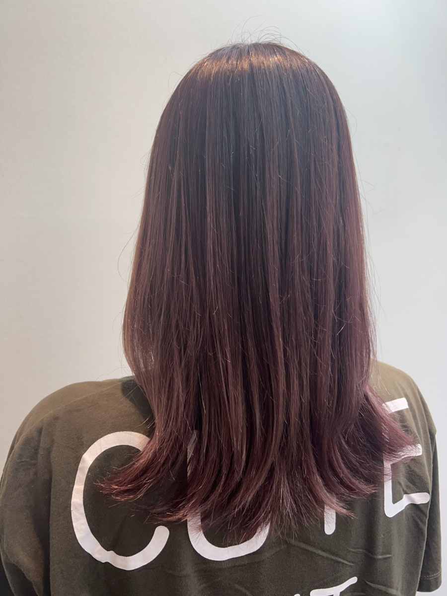 低めのレイヤーカットなので、毛先一巻きでも可愛いです!ピンクカラーは、ツヤ感マシマシになります。