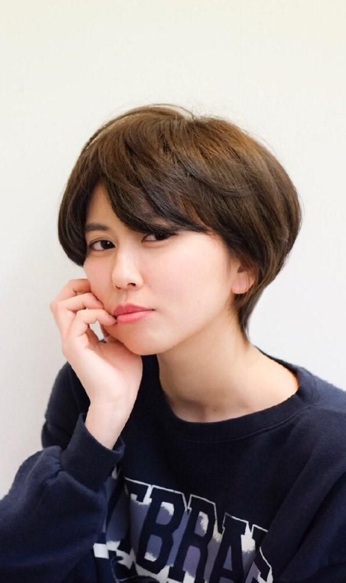 TOPにボリュームがあるシンプルなショート。パートを分けることにより、大人らしさを残しています。耳掛けにも対応しやすいスタイルです。