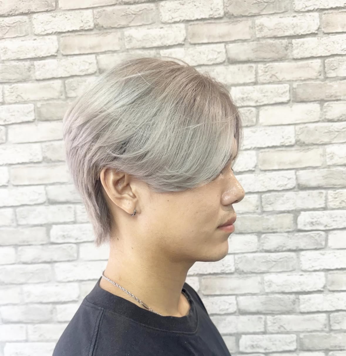 赤みをしっかり抑えた、ホワイト寄りのシルバーグレージュカラー!透明感が出ることで肌がきれいに見え、横顔や後ろ姿までスッキリした印象に仕上がります!ショートスタイルでも重く見えず、クールで洗練された雰囲気が出るのがポイント。